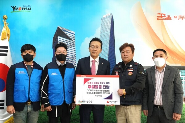 이재호 연수구청장은 “모두가 어려운 시기임에도 후원물품을 기탁해주신 환경교통장애인총연합회, 한국노총인천기계본부, 로얄타일에 진심으로 감사드린다”며 “따뜻한 마음까지 어려운 이웃에게 잘 전달하겠다”고 말했다.