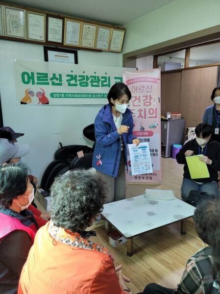 “어르신 건강 교실”사업은 장항1동 거주하시는 어르신을 대상으로 혈당, 혈압 등 기초 건강 체크를 하고 만성질환에 대한 예방 관리 교육, 신체활동, 영양 등 건강 상담도 함께 진행했다“어르신 건강교실”에 참여한 어르신은“다리가 아파서 멀리 병원까지 가는 게 힘든데, 이렇게 경로당으로 와서 혈당 혈압 체크도 하고 상담까지도 해주니 얼마나 좋은지 모르겠다 다들 너무 고맙다”고 하셨다.