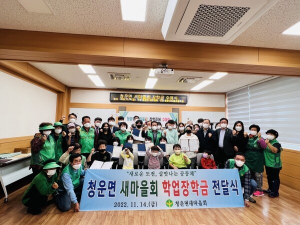 이날 새마을회 학업장학금 수여식에서는 장학증서와 총 500만원의 장학금이 청운어린이집, 청운초, 청운중, 청운고 학생들에게 전달됐다.
