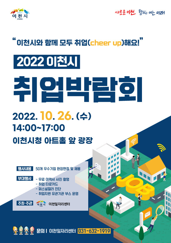 이천시 정인우 일자리정책과장은 이번 대규모 취업박람회가 취업과 채용에 어려움을 겪고 있는 구인·구직자 분들에게 많은 도움이 되길 바라며 이천시는 박람회 이후에도 양질의 일자리 발굴과 지속적인 취업지원을 통해 지역경제 활성화에 기여할 수 있도록 최선을 다하겠다고 말했다.