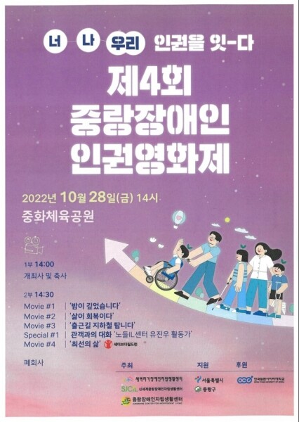 이번 인권영화제는 중랑구가 지원하고 중랑·새벽지기·신세계중랑 3곳의 장애인자립생활센터가 함께 주최한다.