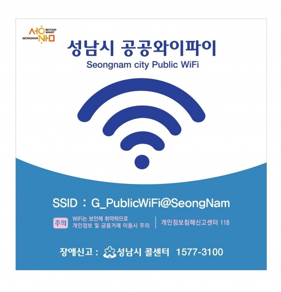 성남시 공공와이파이를 이용하려면 스마트폰의 Wi-Fi 설정에서‘G_PublicWiFi@SeongNam’ 또는 ‘Public WiFi Free’를 선택한 후 이용하기를 누르면 된다.