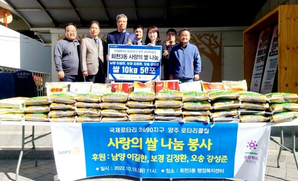 백미는 양주로타리클럽 회원 3명이 지역 내 어려운 이웃을 돕고자 하는 뜻을 합쳐 쌀을 구매해 기부한 것으로 관내 저소득 가구에 전달될 예정이다.