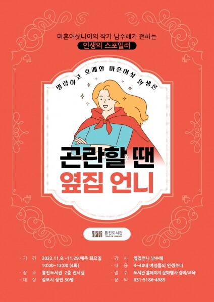 남 작가의 저서 중에는 강의 제목과 같은 ‘곤란할 땐, 옆집 언니’가 있다.