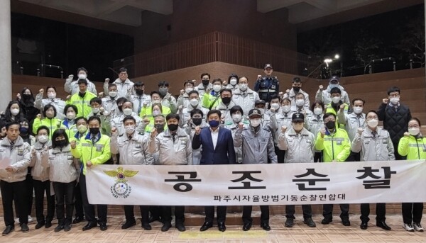 순찰 시작 전 남명우 조리읍장을 비롯해 고준호 경기도의원, 윤희정 파주시의원, 김경래 조리파출소장이 참석해 방범활동에 대한 감사를 표했다.