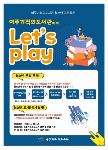 참여 대상은 여주시립도서관 대출 회원으로 여주기적의도서관을 방문 및 전화 신청을 통해 참여할 수 있다.