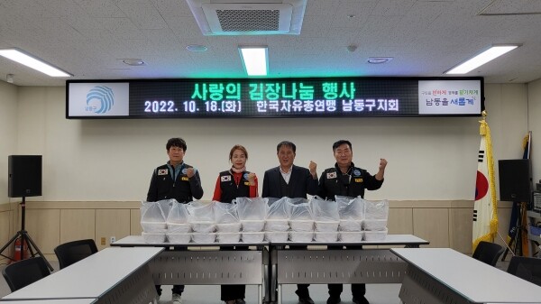 전신배 구월1동 자유총연맹 위원장은 “한국자유총연맹에서 김장철을 맞이해 저소득 및 소외계층에게 김치를 전달하기 위해 행사를 진행했다”며 김치 전달을 통해 대상자들이 따뜻한 겨울을 보냈으면 좋겠다”고 밝혔다.