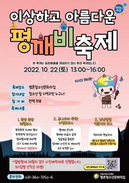 ‘이상하고 아름다운 평깨비 축제’는 우리나라 전래 동화 속 도깨비 나라를 모티브로 도깨비 축제에 평촌지역 주민을 의미하는 ‘평깨비’를 초대해 다같이 축제를 즐기자는 의미를 담고 있다.