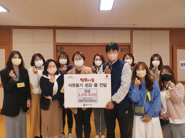 기탁금은 남곡 유나이티드 소속 아이들과 학부모들이 자선 바자회를 통해 얻은 수익금으로 마련했다.