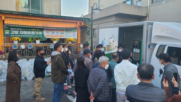 자원순환가게란 페트병 및 그 외 플라스틱류 재활용품을 모아서 가지고 오면, 일정 포인트를 지급받는 사업으로 매주 목요일 오후 2시~오후 5시 풍산동 행정복지센터 앞마당에서 운영된다.