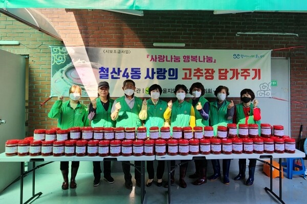 설미정 철산4동장은 “매년 어려운 이웃들을 위해 온정을 베풀어 주시는 새마을지도자협의회와 부녀회 회원들에게 감사의 말씀을 드린다”며 “동에서도 관내 소외된 이웃을 적극 발굴해 도움의 손길을 드릴 수 있도록 노력하겠다”고 전했다.