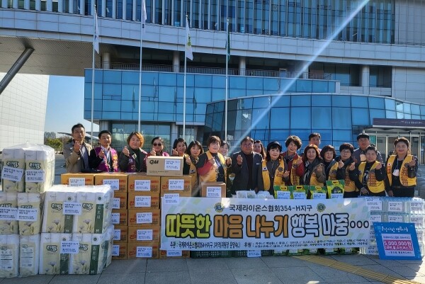 국제라이온스협회 354-H지구 3지역은 추워지는 날씨에 소외된 이웃을 돕기 위해 라면 100박스, 쌀 4kg 50포, 물 250박스, 화장지 50박스, 파주닭칼국수 50인분 등 500만원 상당의 겨울맞이 물품을 준비해 전달했다.