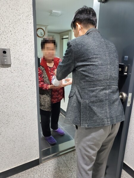 코로나19 예방수칙을 준수하며 독거노인 및 장애인 등 안전이 취약한 가구에 직접 방문 전달하면서 민원 불편사항과 안부도 함께 확인했다.