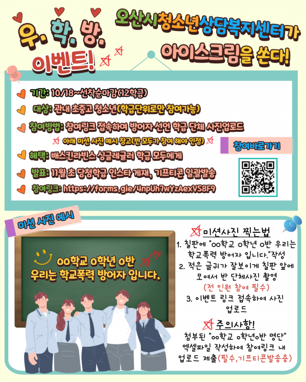 윤성지 센터장은“청소년이 가장 오래 머무는 공간이 학교 교실인 만큼 배려와 존중이 함께하는 협동 문화 형성이 중요하다”며 “이번 이벤트를 통해 반 전체가 협동해 모두에게 맛있는 아이스크림을 선물하는 행복한 경험을 하길 바란다”고 전했다.