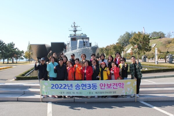 조항관 송현3동장은 “최근 한반도 주변의 군사적 긴장감이 크게 높아진 상황에서 주민들의 나라 사랑 정신과 안보의식 강화를 위해 지속적인 안보견학을 실시할 예정”이라고 말했다.