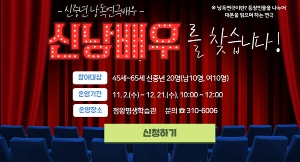 평소 연극에 관심이 있던 신중년이라면 ‘신나는 신낭배우’ 과정에 참여하면 된다.