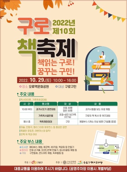 ‘구로책축제’는 ‘책 읽는 구로 꿈꾸는 구민’을 슬로건으로 오류역문화공원에서 펼쳐진다.