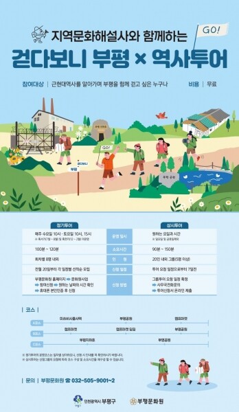 ‘2022 걷다보니 부평 역사투어’는 무료로 진행하며 참여를 희망하는 경우 부평문화원 홈페이지에서 신청 가능하다.