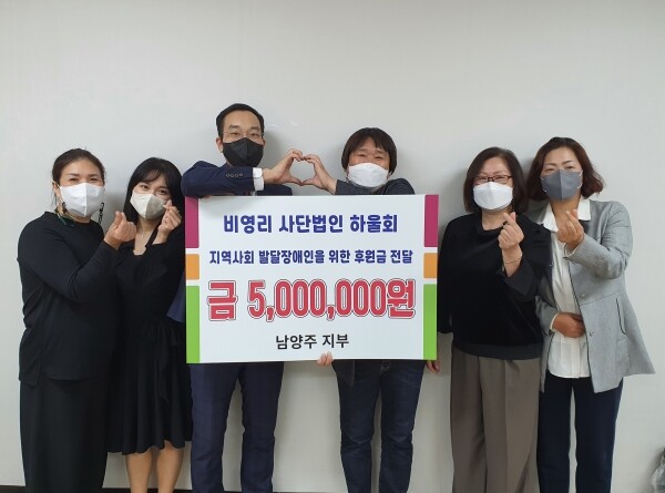 이날 전달식에서 하울회 남양주지부 김요섭 시설장은 “비영리 법인으로서 그간 발달장애인을 대상으로 주간, 방과 후 서비스 등을 제공하며 얻은 수익금이 남양주시 발달장애인의 복지 향상에 쓰이길 바라는 마음으로 후원을 결정했다”며 “앞으로도 남양주시 발달장애인의 복지 향상을 위해 지속적으로 노력하겠다”고 말했다.