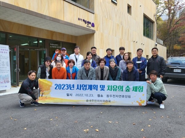 장민경 송내동 주민자치위원장은 “치유의 숲 체험을 통해 그동안 코로나19로 받았던 스트레스를 풀 수 있었던 좋은 시간이었다 2023년 특색사업도 좋은 사업들을 결정해 내년에도 발전하는 송내동 주민자치위원회가 되길 바란다”고 밝혔다.