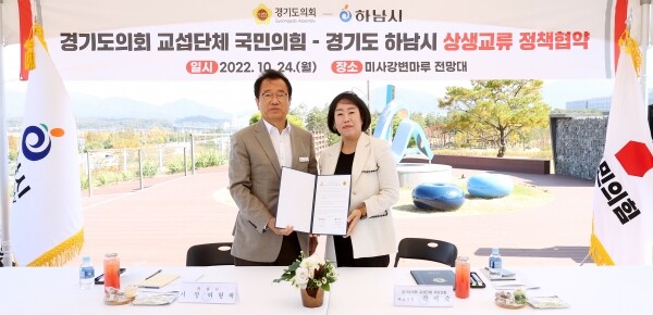 이날 체결된 ‘상생교류정책협약서’는 한류문화 확산 등 일자리 창출을 위해 국민의힘과 하남시가 함께 노력하고 행·재정적 지원을 위해 상호협력한다는 내용을 담고 있다.