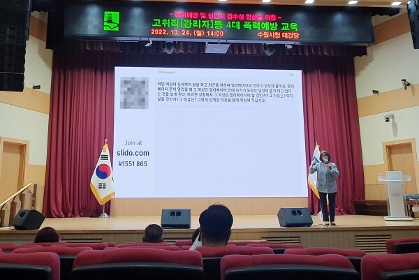 수원시 관계자는 “성평등에 대한 인식을 높이고 안전한 공직 문화를 조성하기 위해 공직자를 대상으로 한 체계적인 교육을 지속해서 운영하겠다”고 말했다.