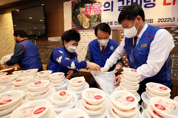 무료급식 봉사에 참여한 김찬진 동구청장과 바르게살기운동 회원 10여명은 정성껏 준비한 갈비탕과 햇반 등이 담긴 도시락을 취약계층에게 전달했다.