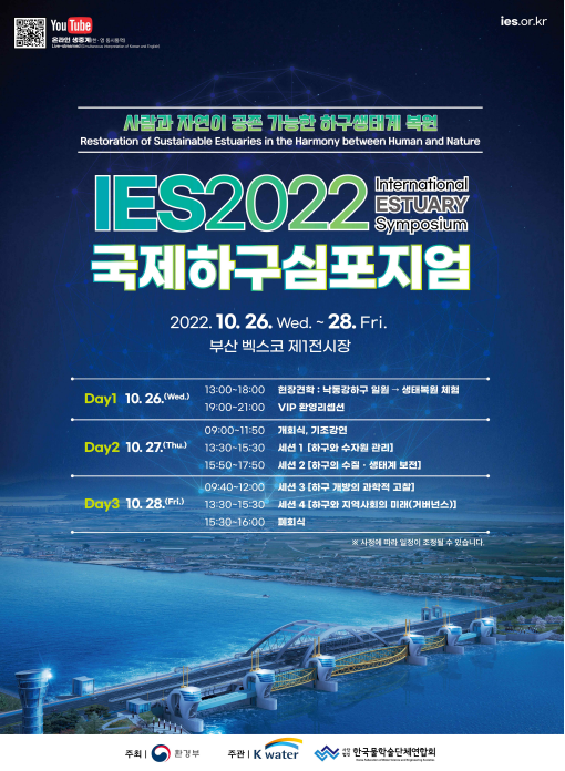 이어서 국내외 전문가들이 ‘하구의 수자원관리’, ‘하구의 수질·수생태 보전’을 주제로 학술발표를 하며자연과 공존하는 하구 이용에 대해 논의한다.