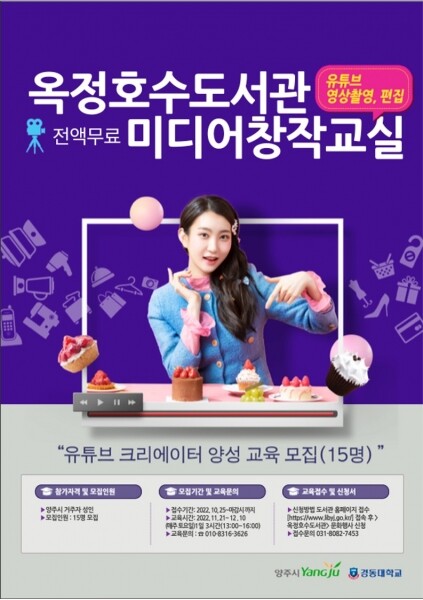 교육은 이론과 실습강의로 옥정호수도서관 미디어창작실 스튜디오와 경동대학교에서 진행되며 도서 영화, 음악 등을 리뷰하는 영상을 그룹 형태로 촬영해 이를 직접 편집, 디자인해 포트폴리오를 완성하는 과정이다.
