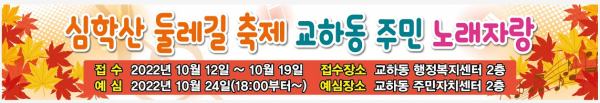 이창우 교하동장은 “이번 행사를 통해 심학산의 아름다운 자연을 주민과 함께 즐길 수 있는 기회가 될 것”이라며 “심학산을 걷고 다양한 체험행사에 참여하며 주민이 서로 소통하는 화합의 장이 되길 바란다”고 말했다.