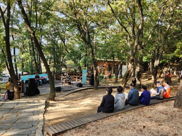 지나가던 등산객과 주민들은 숲속 바람을 타고 울려 퍼지는 악기 소리에 이끌려 발길을 멈추고 음악을 감상하며 가을 정취를 만끽했다.