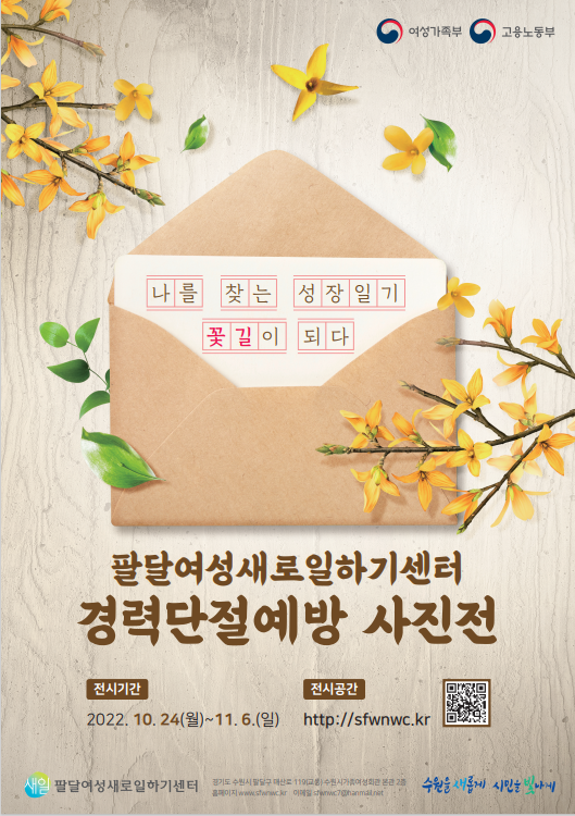 팔달여성새로일하기센터 홈페이지에서 나를 찾는 첫걸음 꿈을 찾는 노력 나란히 걷는 꿈 세상의 문을 열다 등을 주제로 경력단절 여성 지원사업 관련 사진 140여 점 이상을 전시한다.