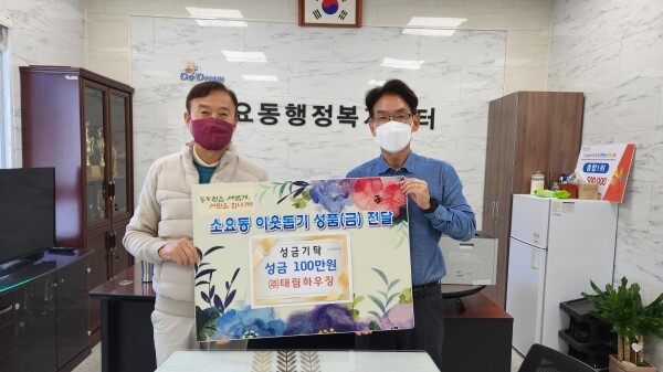 이날 태림하우징에서 기탁한 성금 100만원은 오는 11월에 있을 소요동 사랑의 김장 나눔 사업에 소중하게 사용될 예정이다.