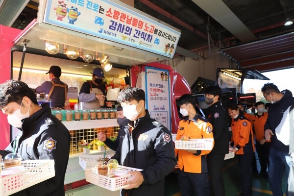 이날 행사에서는 소방대원들에게 핫도그와 음료, 과일 등을 제공하고 기념품 경품 행사를 진행했다.