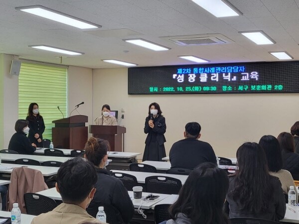 서구 관계자는 “찾아가는 보건복지 서비스를 추진하면서 동 단위 통합사례관리 중요성이 커지고 있다”며 “이에 대응능력을 강화하고 업무능력 향상을 위한 교육을 계속 진행해 대상자 중심의 맞춤형서비스를 지원하도록 노력하겠다”고 말했다.