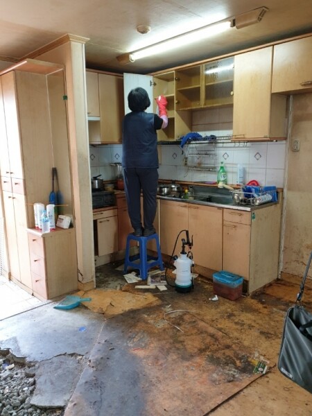 용인시처인장애인복지관의 주거환경토탈케어 안전한 우리집 사업을 통해 집 안에 쌓인 쓰레기를 수거하고 악취와 얼룩이 남지 않도록 깨끗하게 청소했다.