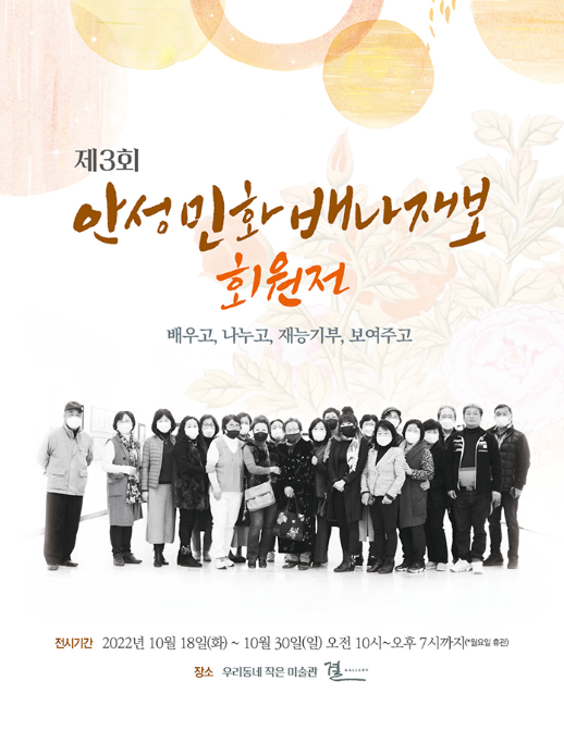 전시는 오는 10월 30일까지 진행되며 안성천에 조성된 결 갤러리를 방문하면 안성시민 누구나 무료로 관람할 수 있다.