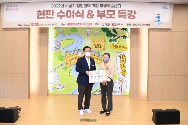 27일 하남시에 따르면 시는 지난 25일 감일동주민자치센터를 평생학습센터로 공식 지정하고 시민 150여명이 참석한 가운데 현판 수여식을 진행하는 등 본격적인 사업 추진에 나섰다.