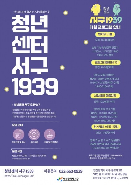 ‘민관의 필연적 만남, 그것이 협치’라는 부제로 열리는 이번 행사에서 서구는 청년정책의 비전, 행정과 청년정책 참여에 대한 강의를 진행하고 그룹 활동을 통해 청년의 필요로 나온 아이디어가 행정을 통해 실현되도록 서구 청년지원팀과 방법을 모색하는 활동을 하게 된다고 설명했다.