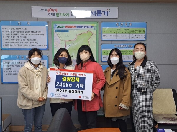 김종수 동장은“올해도 변함없이 이웃사랑을 실천하고 계신 박애정 만수3동 통장협의회장님을 비롯한 통장님들께 감사드린다”며 “후원해주신 마음을 담아 어려운 이웃들을 위해 골고루 전달하겠다”고 밝혔다.