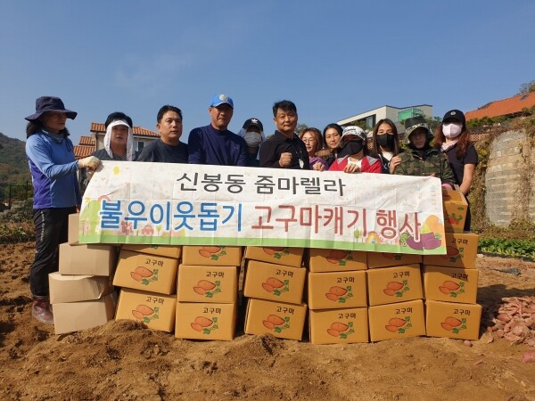 [뉴스써치] 용인특례시 수지구 신봉동은 지난 27일 여성축구단 회원 10여명이 어려운 이웃에게 기부할 고구마 20여상자를 수확했다고 밝혔다.