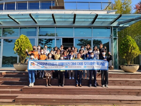 실습형 훈련방식으로 진행된 이번 생물테러 대비·대응 훈련에는 안성경찰서 안성소방서 안성시보건소, 안성시 시민안전과 직원 등 30여명이 참여해 생물테러 대비 및 대응체계, 생물테러 대응 초동조치, 개인보호복 착·탈의 방법 등을 숙지했다.