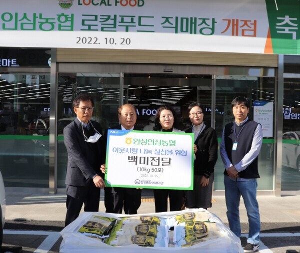 박봉순 안성인삼농협 조합장은 “합리적인 가격의 건강한 먹거리를 제공하는 기관으로써, 지역에 도움이 필요한 곳에도 항상 나눔을 아끼지 않는 안성인삼농협이 되겠다”고 전했다.
