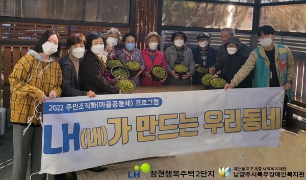 이번 기부는 지역사회 공동체 형성을 지원하는 마을공동체 프로그램 ‘LH가 만드는 우리동네’의 일환으로 진행됐으며 단지 내 노인회 6명의 어르신들이 정성껏 키운 콩나물을 지역 내 장애인과 남양주시 북부장애인복지관으로 전달했다.
