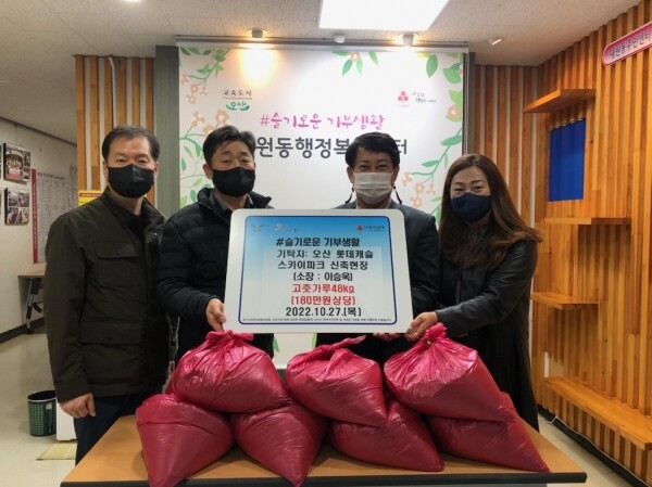 모천우 대원동장은 “어려운 시기에 따듯한 정성을 보내주신 오산롯데슬 스카이파크에 감사드리며 정성 가득한 김장김치를 담가 어려운 이웃들에게 잘 전달하겠다”고 답했다.