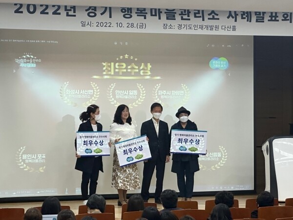 용인시 포곡읍, 남양주시 진접읍, 이천시 백사면, 구리시 수택동, 포천시 신읍동 등 5개 행복마을관리소는 우수상으로 선정됐다.