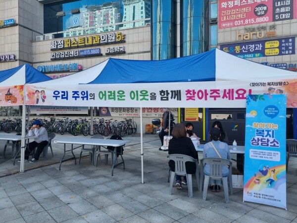 효율적 상담을 위해 화정1동 맞춤형복지팀과 연계해 공동 운영했으며 현장 운영 부스에서 상담 및 복지 정보 제공이 원스톱으로 가능하도록 인력을 배치했다.