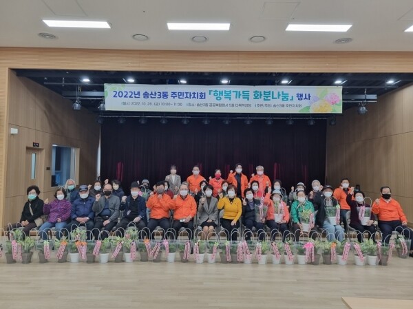 임용혁 송산3동 주민자치회장은 “이번 행사를 위해 도움 주신 모든 분들께 감사드리며 생명이 담긴 작은 화분을 통해 우리 어르신들의 고독감을 달래고 일상의 벗이 되길 바란다”고 밝혔다.