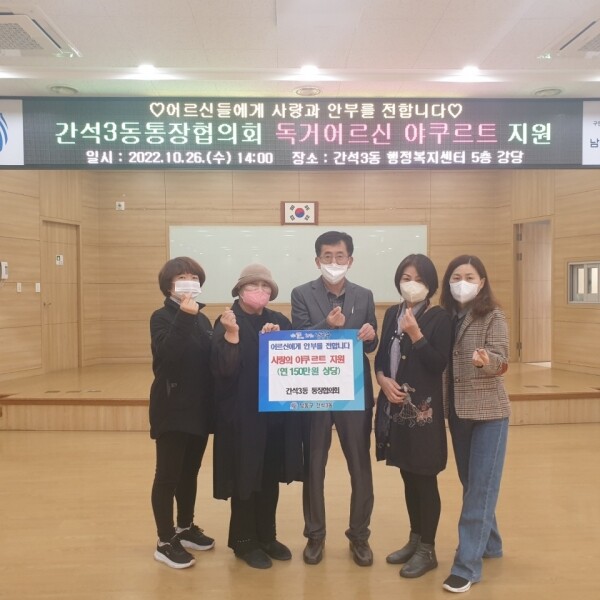 박광철 동장은“어르신들의 고독사 예방 및 건강관리를 위해 꼭 필요한 사업이며 앞으로도 민·관 협력을 통해 어르신들이 더 행복한 간석3동 만들기에 최선을 다하겠다”고 전했다.