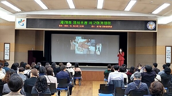 ‘명사초청 서구아카데미’는 교육, 건강, 교육, 인문학 등 다양한 분야 명사를 초청해 주민에게 수준 높은 특강을 제공하는 프로그램으로 올해 코로나 이후 2년 만에 재개돼 올해 두 차례 모두 성황리에 강연을 마쳤다.